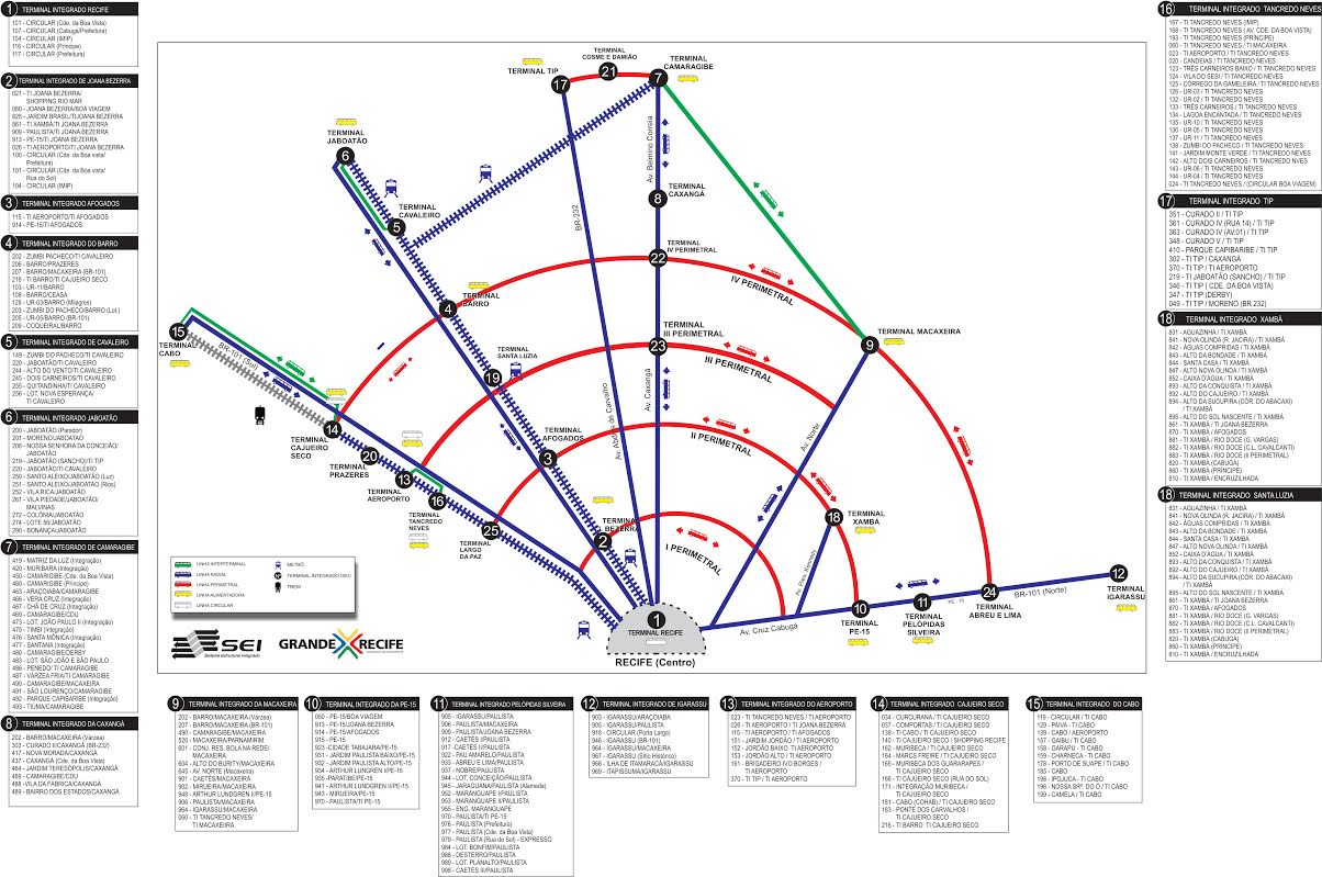 Percursos do metrô do RECIFE passa por estações que possuem terminais integrados com onibus.
